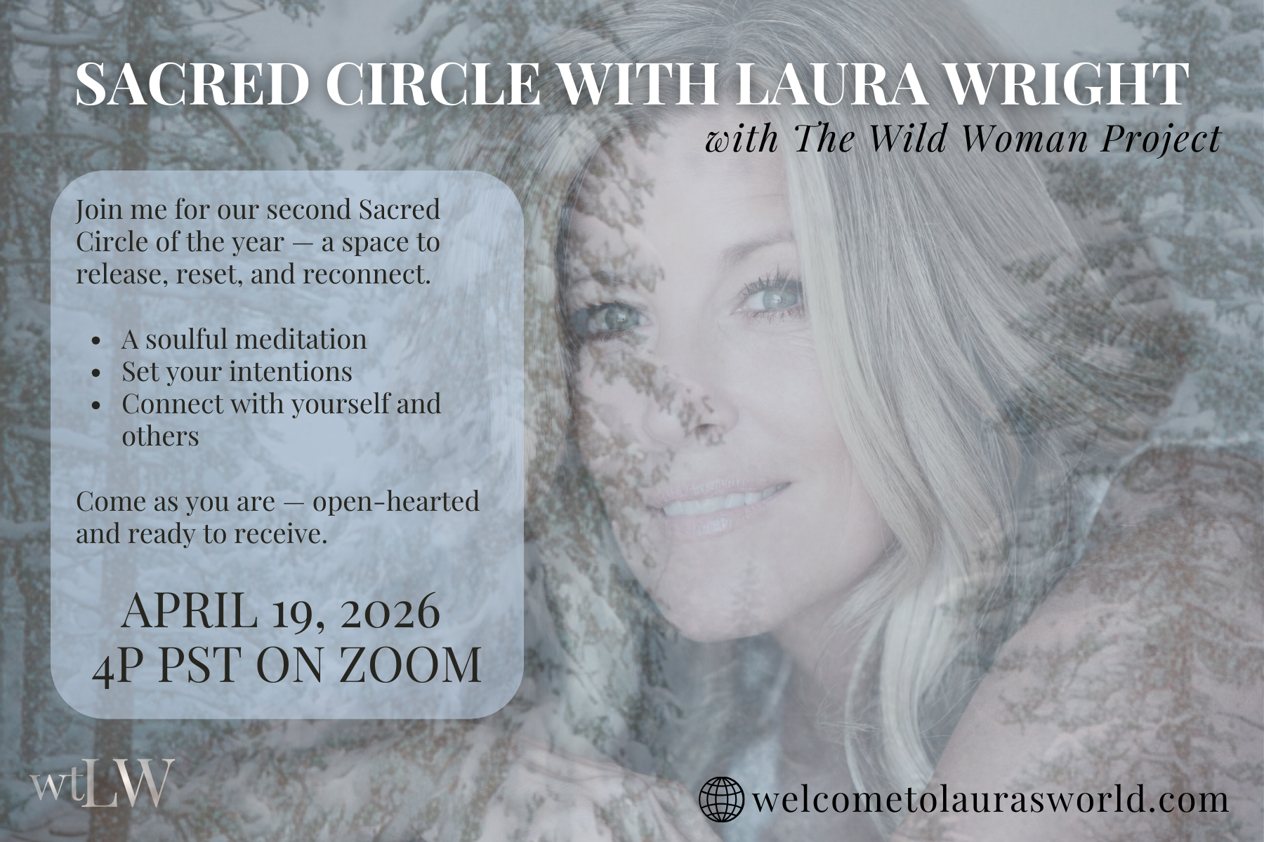 Through conversation, reflection, and shared experience, Laura’s World invites awareness of the language and patterns that keep you stuck, and offers a gentle return to personal responsibility — being impeccable with your word, not taking things personally, not making assumptions, and always doing your best, moment by moment.